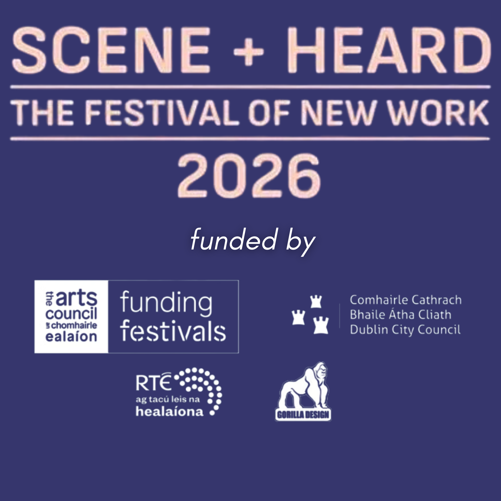 Scene + Heard 2026 was presented in association with Dublin Municipal Theatre (DMT) at Smock Alley Theatre. The festival was funded by The Arts Council of Ireland and Dublin City Council Arts Office, and sponsored by RTÉ Supporting the Arts, Gorilla Design and Select Hire.
